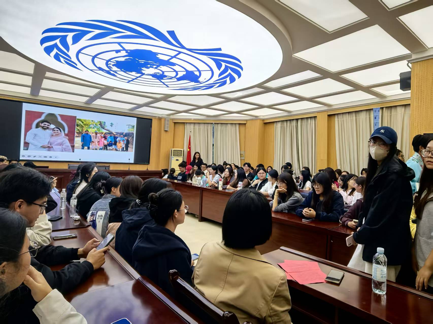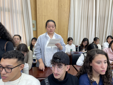 活动现场,来自不同国家的留学生、外籍教师与全校各专业的英语爱好者齐聚一堂,共同开启了一场精彩的跨文化对话。不同肤色、不同语言背景的参与者带着本国的文化故事,用流利的英语分享着家乡的风土人情;外籍教师结合自身教学经验,引导大家突破语言表达瓶颈;各专业的英语爱好者也积极踊跃,或提问交流,或分享学习心得,不时传来阵阵笑声与掌声,气氛热烈得让人瞬间融入其中。不同国籍、不同专业的参与者围绕服饰文化差异趣事等话题畅所欲言,展开深度互动,打破了文化与专业的界限,在轻松愉悦的氛围中增进了彼此的了解,也让语言学习变得生动有趣。